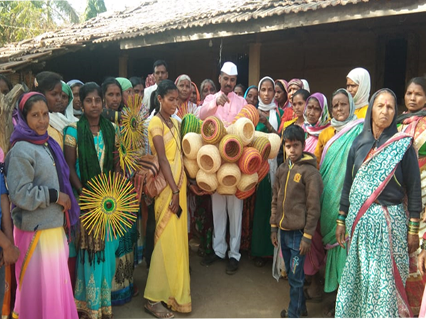 Tribal people were taken on a field trip to Saputara, where they saw different types of bamboo crafts.