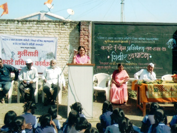 Karate and self-defence training was given to 850 girls from Srirampur and Kopargaon taluka, dist- Ahmednagar which was funded by the Woman and Child welfare department.